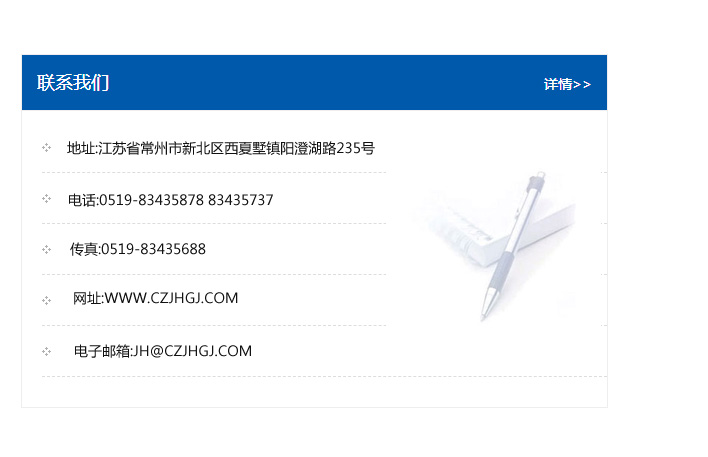 地址:常州市新北區友邦商務大廈1幢16、17層  電話:0519-85101652  傳真:0519-85112595  郵編:213022  網址:www_cz-jiayue_cn.sxcslm.com  郵箱:xiajifengaa@163.com